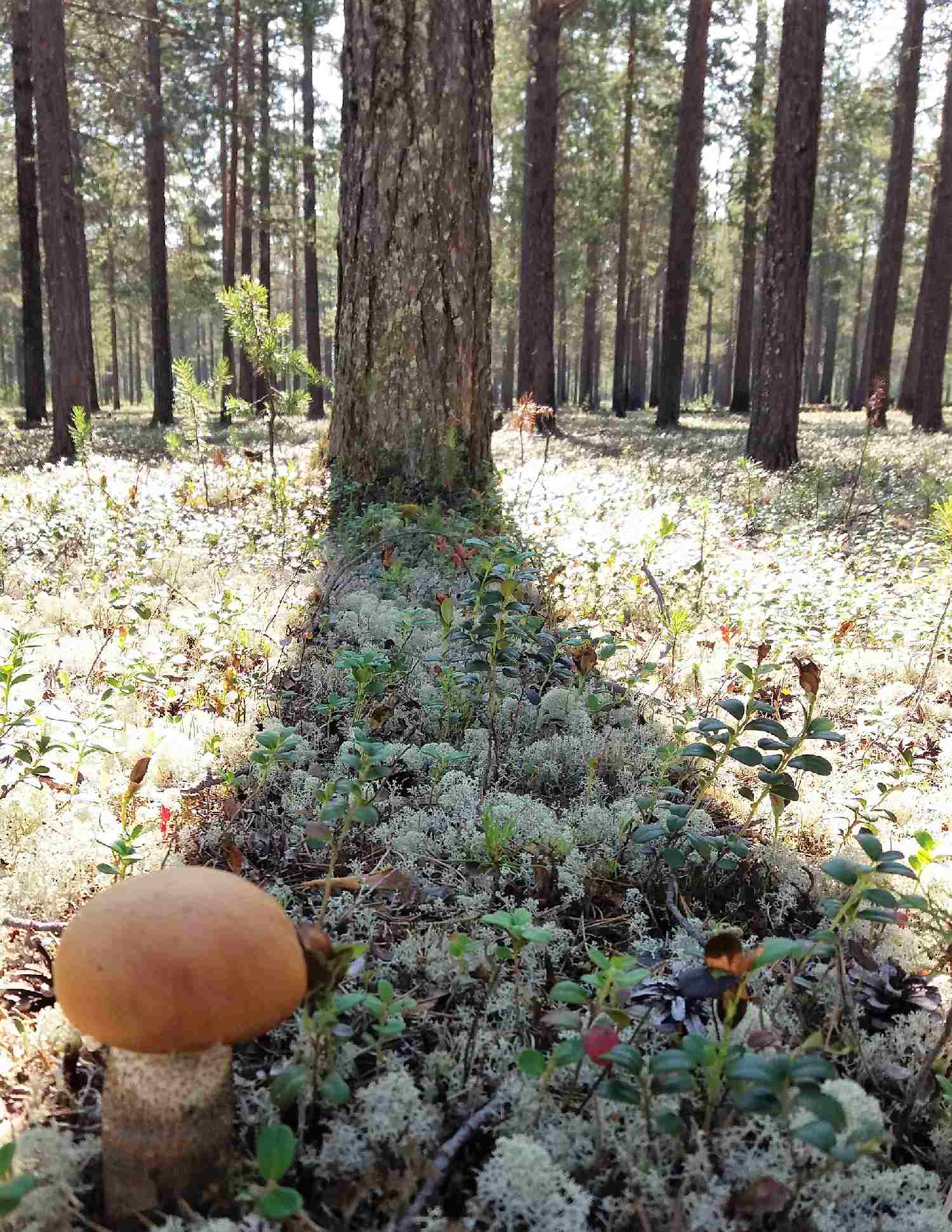 Люди срезали все целые грибы, хотели срезать и надкусанные, но побрезговали и ушли. От целых грибов под соснами остались только потревоженная растительность и печальные срезы, а от иных и срезов не осталось. Надкусанные же грибы долго еще простояли в том лесу, не нужные людям и забытые белками. Осенью они ушли в грибницу, чтобы на следующий год появиться вновь с красивой шляпкой.