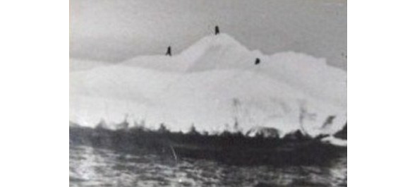 Рыбаки ходят по айсбергу в поисках воды.