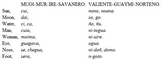 Thus Lucien Adam has pointed out that the two groups of the Guaymi dialects differ as widely, as follows: