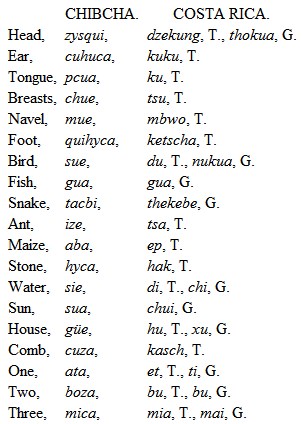 Comparison of the Chibcha with the Costa Rican Dialects.