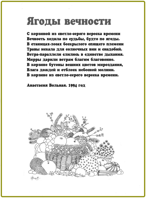 Розами, поцелуями,Днями, вЁснами, звЁздамиОбольёшь меня, убаюкаешь,Обожжёшь меня, воскресишь меня.Расплетён венок талых снежных струй.Шёпот-шум ручьёв быстротечности.Знаешь, чувствуешь, думаешьВместе с птицами, змеями,Вместе с ветром, с деревьями.Вместо огняВдохновишь меня, вознесёшь меня.1993 годПритча о времени