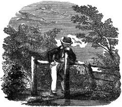 "There he was, alone, wet as a drowned rat, and shivering, partly from cold and partly from fright, as if he had the ague. Poor fellow! His conscience began to be heard again, now he had time to think. He hardly knew what to do; he was ashamed to go home to his mother; and there he stood, for a good while, leaning his head on the fence near the water, the tears all the time chasing each other down his cheeks."