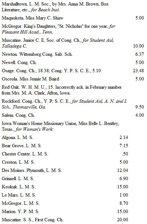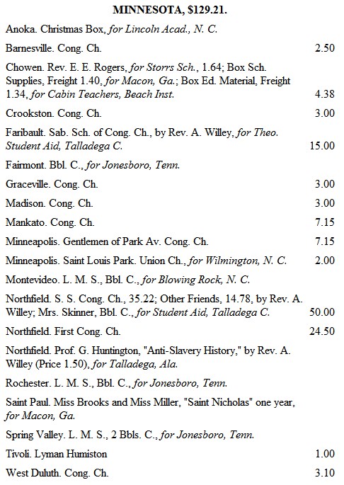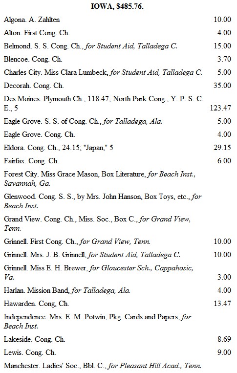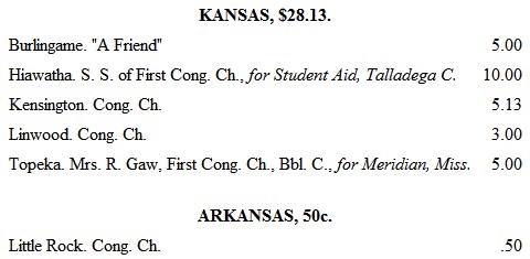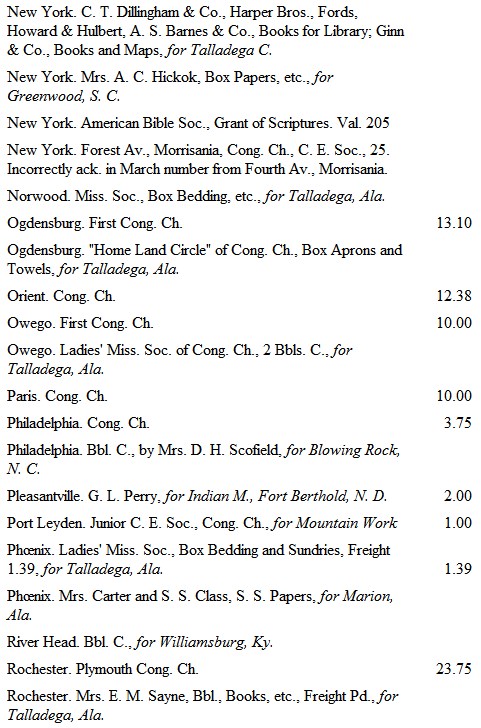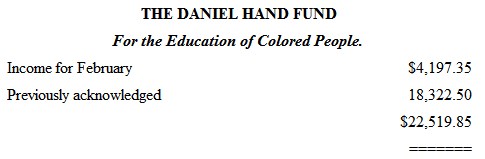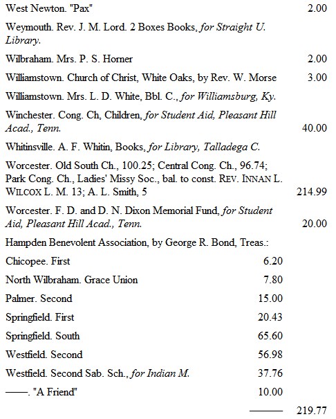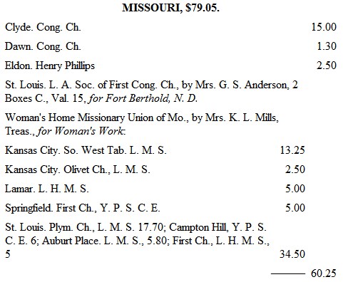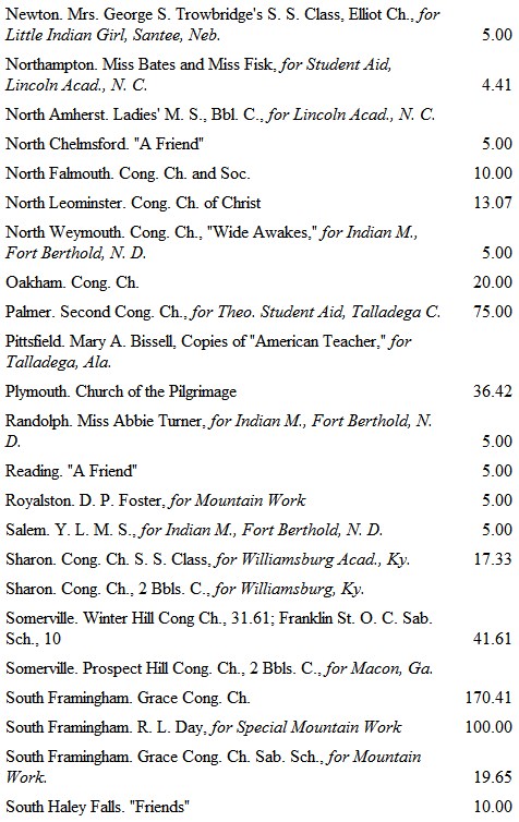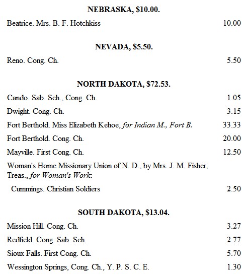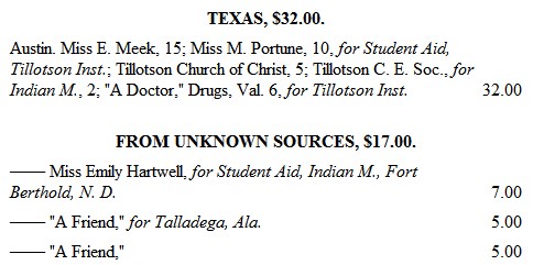 "On February 10, our mission people and Pilgrim Church responded to the call of the American Missionary Association, and made a subscription of two hundred and sixteen dollars. This subscription will be paid in before the first of April, and it will likely be increased some. Of course the larger part is the gift of the missionaries, but the Indians did well, a number contributing five dollars apiece."