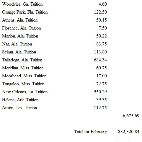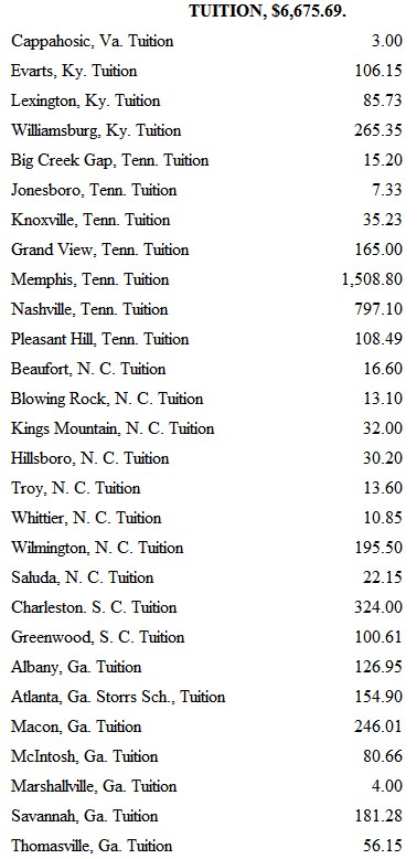 Extract from a letter, Andersonville, Ga.: It is pitiful to see the children come so regularly four or five miles to school, their feet protruding from their broken shoes, bringing their baskets of tuition in the way of chickens, eggs, etc., to pay their school bills. One longs to cook up the things brought and give food to the poor children and wrap them in warm clothing, but I know the only way to make them self-reliant and keep them from the spirit of mendicancy is to require them to pay.