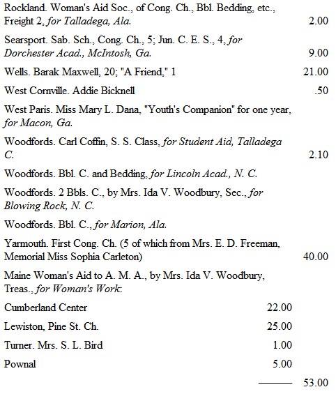 South Berwick, Me. Mrs. K. B. Lewis, Bbl. Mdse.,for High Point, N. C.