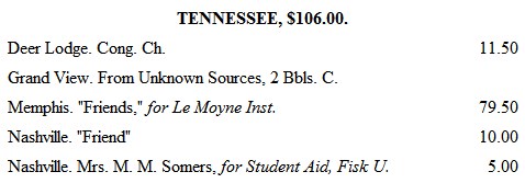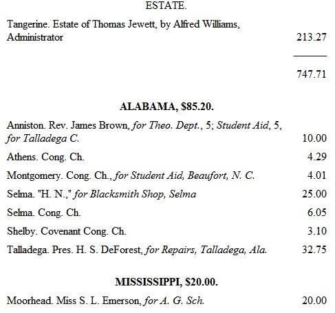It was a revelation to the brethren to hear the report of Rev. James Herod, of the American Missionary Association meeting at Lowell, Mass., and of Mr. E. H. Phillips, of the Cleveland Christian Endeavor meeting. It was the first time these colored men had been North or East, and had come in contact with Northern civilization. First-class trains, hotels and Christian hospitality from "our brother in white" were all new to them.