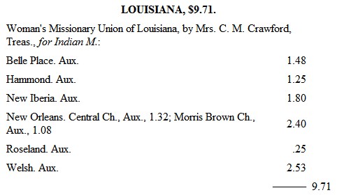 The report made by our field missionary of the Sunday-school Convention held in London, Eng., also inspired the brethren with the hope that the good time coming will come ere long, when they will be measured by their worth and work, and not always be despised and oppressed because of the accident of birth and condition. The Woman's Missionary State Union, with Miss Bella Hume as president, held an interesting meeting. They are assisting in the support of a missionary at our Indian Mission at Santee, Neb. The Sunday-school State Association, Rev. J. W. Whittaker, moderator, also held an inspiring meeting. Mr. Alfred Lawless, Jr., was appointed general Sunday-school superintendent to visit needy Sunday-schools in the State, and especially to assist in organizing Sunday-schools on the sugar plantations.