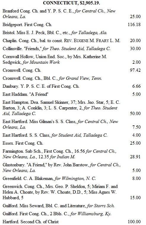 The reports from the churches showed a steady growth and hopeful outlook, in spite of the hard times. These churches of Southern Louisiana are in the black belt of the State on plantations and in towns adjacent to the large sugar plantations. Many of the planters have become bankrupt by the changed conditions of giving up the sugar bounty, while the poor colored laborers have been the greatest sufferers.