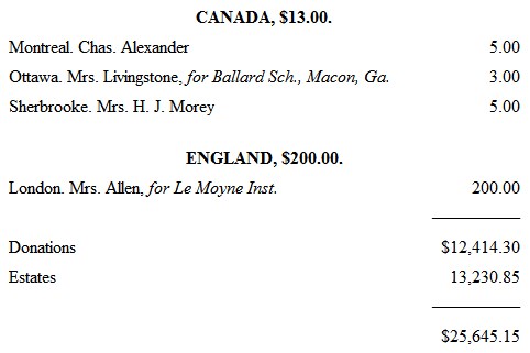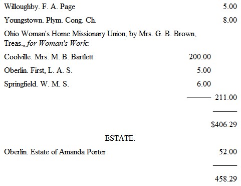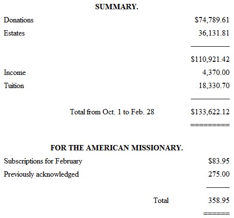 And while we are on this matter of the finances, we will give an abstract of the treasurer's final statement respecting current expenses in our general work: