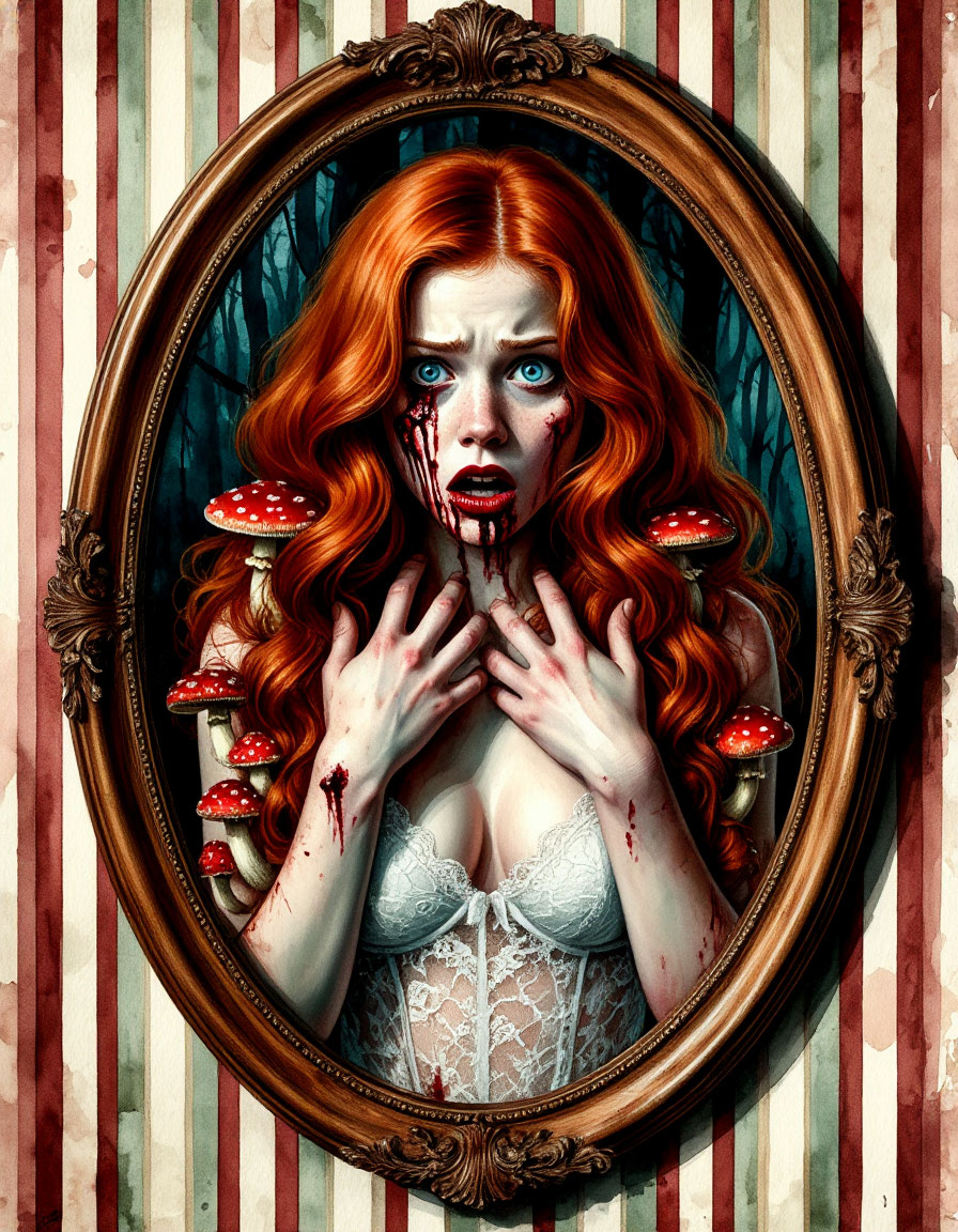 Неуверенно ступая босыми ногами по холодному полу, Вадим добрёл до туалетной комнаты. Как он и ожидал, там над раковиной обнаружилось большое зеркало. Из отражения глянуло бледное измученное лицо Ангелины. Некогда пышная укладка истрепалась в паклю, вокруг губ рядами темнели подживающие дырочки от ниток.