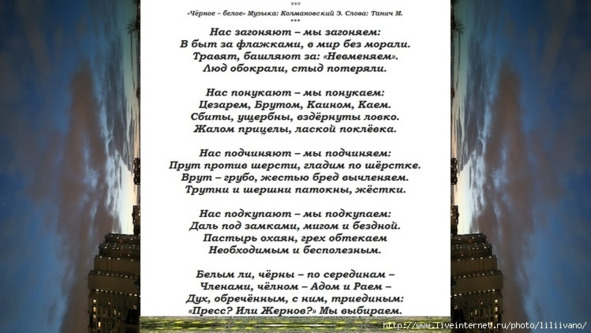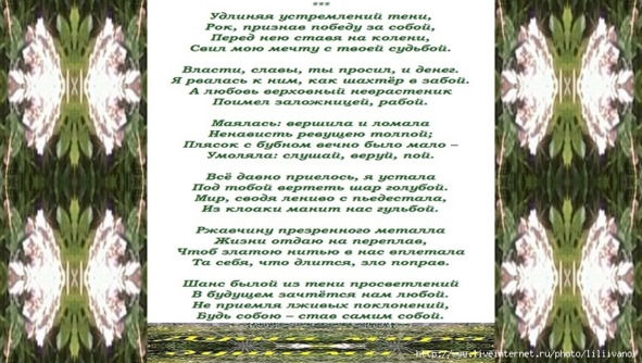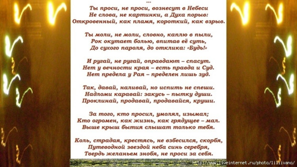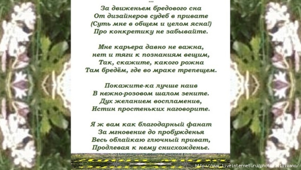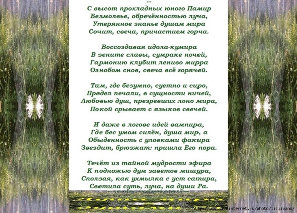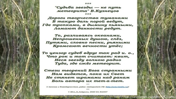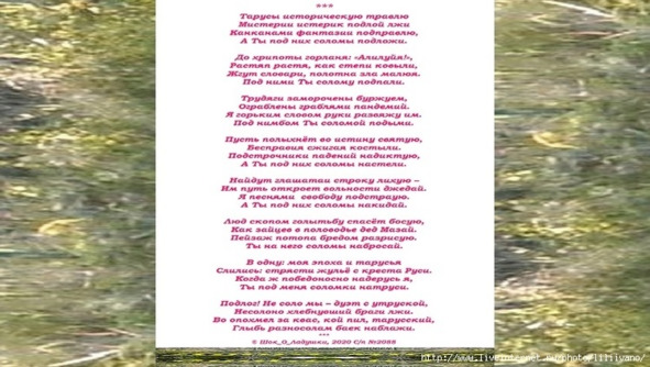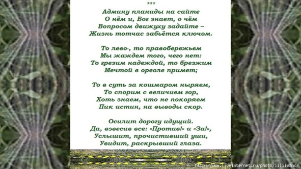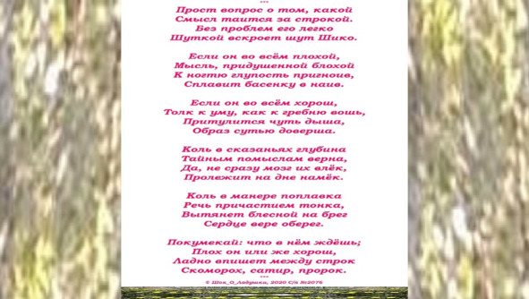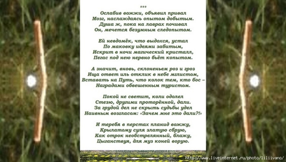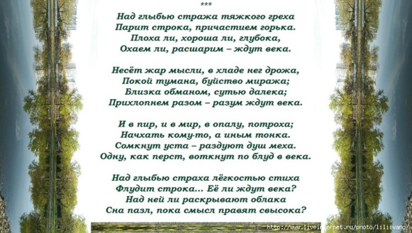 ***Дороги творчества туманамиВ такую даль порой ведут,Где тропками, в дымину пьяными,Ломают данности редут.То, разливаясь океанами,Непрошенных душою, слёз,Путями, словно песни, рьянымиКромсают вечности утёс;То цензор судеб вдруг так рад и. о.,Что рок и тот считает: квит,Неся звезду волною радиоТуда, где сжёг метеорит.Стези творений Бога страннымиНам видятся, пока их СветНе стянет шрамами над ранамБоль автора их тет-а-тет.© Шок_О_Ладушки, 2020 С/п №2307