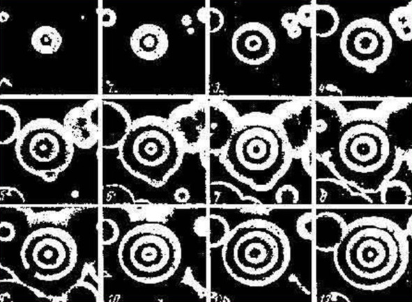Так выглядит реакция Белоусова-Жаботинского в процессе возникновения упорядоченных структур: