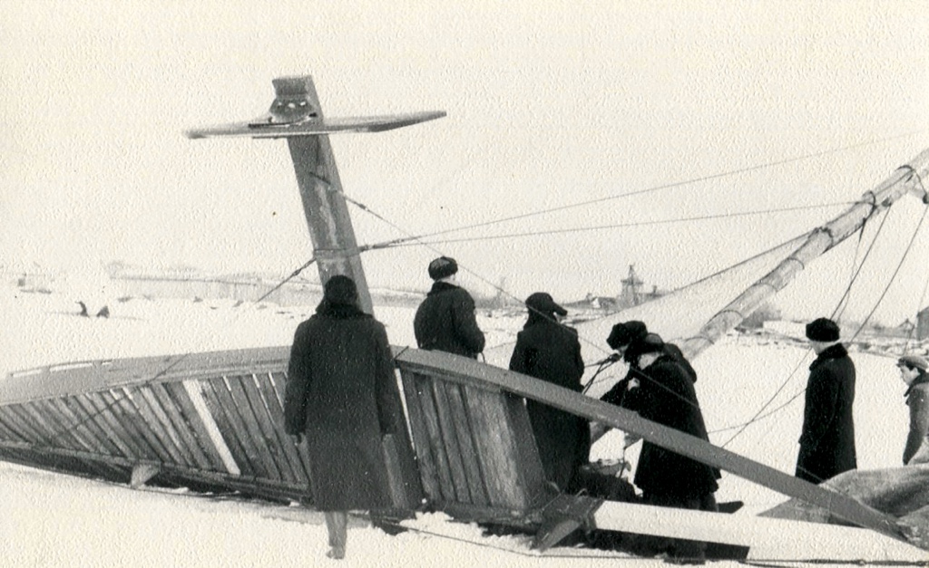 Извлечение же провалившегося буера на лед это целая эпопея и серьезная спасательная операция. Конечно, нужно было созвать много помощников, притащить доски, ваги (длинные толстые шесты-жерди) длинные и крепкие концы (мягкие тросы). Необходимо было завести концы за мачту и за корпус, а для того, чтобы на тонком льду не провалиться, нужно было уложить доски и только по ним перемещаться. Следовало завести под корпус в воду прочные доски, чтобы по ним потом затаскивать буер на лед, предварительно поставив буер за мачту в исходное положение (корпус горизонтально, мачта вертикально). После этого за концы тянут буер в направлении от майны, пока провалившийся конек не упрется в кромку льда. Далее, предстояло самое сложное; вагами нужно было поднять конек, подложить под него прочные доски, и далее вытаскивать буер, не дав ему опрокинуться. Тащить нужно за корпус и за мачту, пока буер не встанет на прочный лед. Затем предстояло убрать доски из под коньков и откатить буер в безопасное место. Часто было необходимо убрать парус, чтобы ветер не мешал ставить буер в вертикальное положение.