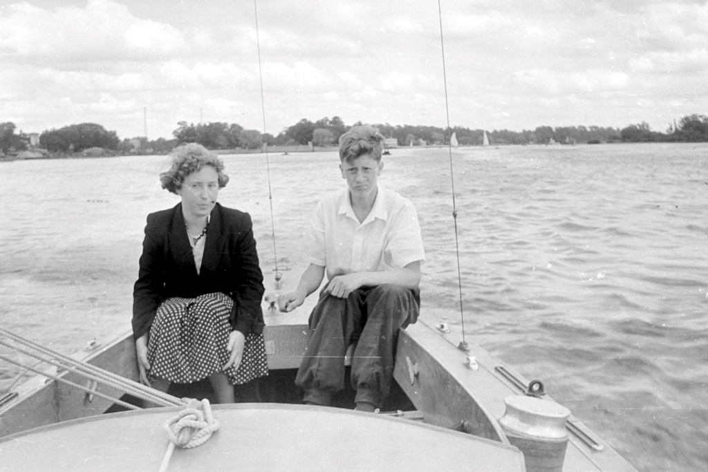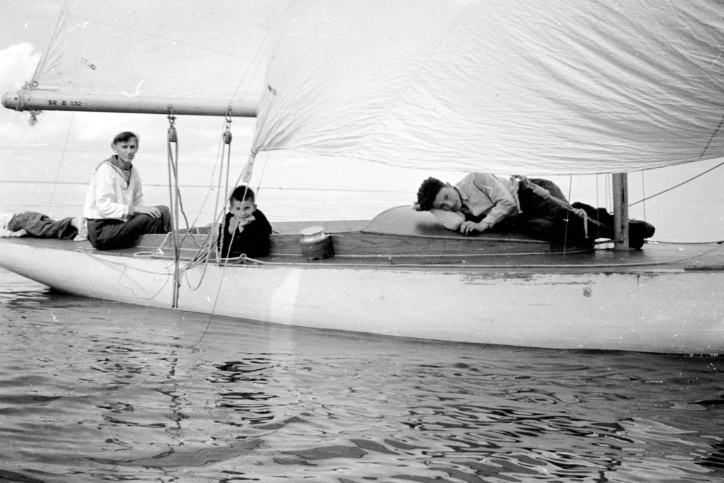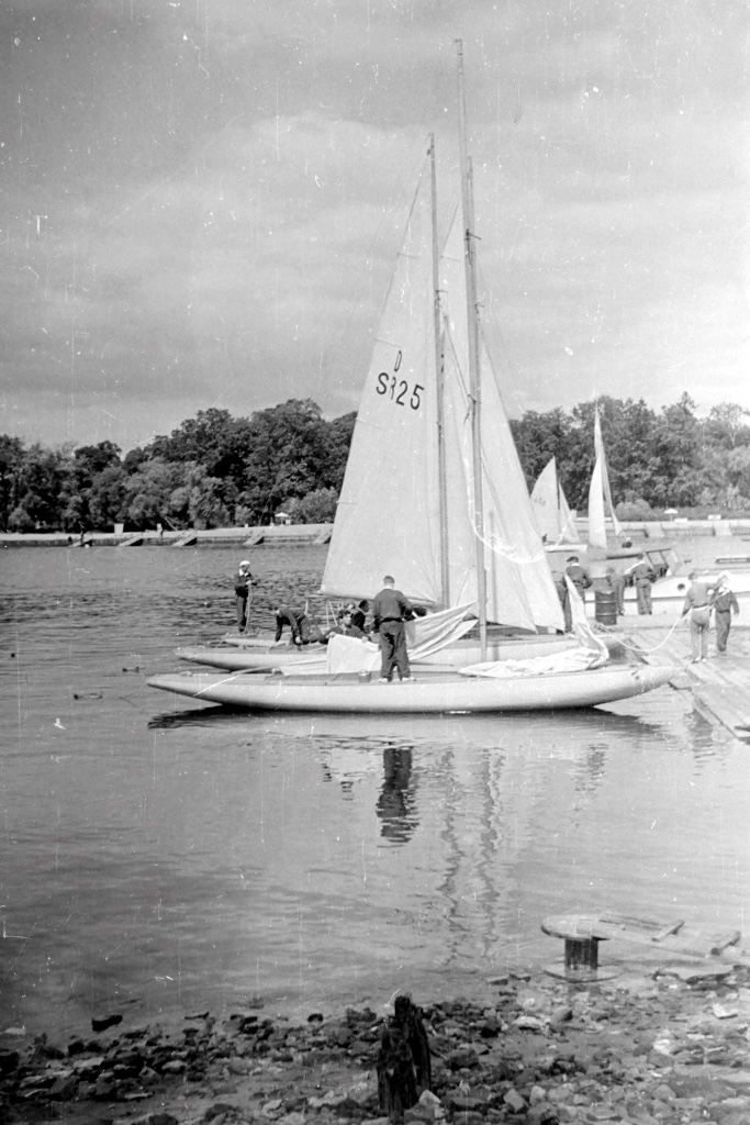 В 1957 году летом спортивный лагерь был в Петродворце, яхты и швертботы стояли в гавани, закрытой дамбой и причальной стенкой.