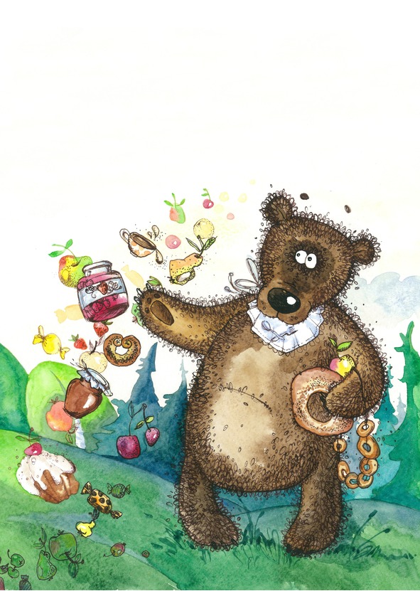 Сколько фруктов неизвестных,Сладко тающих во рту,Вкусных, свежих и полезных:Всё, что нужно животу!Тут баранка, там конфета,Молоко, варенье, чай…Ел и пил медведь всё лето.Вдруг – возьми, да заскучай.В небе славно, дома краше,Это скажет вам любой.А спускаться вниз не страшно,Если воз еды с собой.***Тут и осень воротилась,Праздник для зверья в лесу.Что самим не пригодилось,Всё на ярмарку несут.И медведь привёз добычу,Даром всё раздал скорей.С той поры медведя кличутВсе в лесу царём зверей.В каждой сказке есть подсказка.Дорогие малыши,Посвящаю эту сказкуТем, кто хочет быть большим.Знай, быть маленьким – не плохо.Дорастёшь и до царей.Можешь стать Царём-Горохом,Можешь стать царём зверей.Будь кем хочешь. Только всё жеТы запомни навсегда:Подрасти тебе поможетЛишь здоровая еда!
