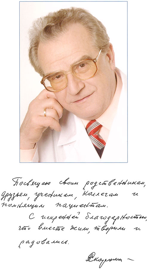 спонсорам: генеральному директору ООО «Герофарм» г-ну Петру Петровичу Родионову, медицинскому директору этой фирмы профессору Марку Михайловичу Дьяконову; директору представительства в России фирмы «Шеринг АГ» д-ру Манфреду Паулю, руководителю отдела специализированной терапии Маргарите Витальевне Михеевой, директору Северо-Западного филиала ЗАО «Шеринг АГ» г-же Алле Эдуардовне Губенко; президенту компании «Никомед Россия – СНГ» г-ну Йостейну Девидсену, ее коммерческому и региональному директору проф. Иллариону Николаевичу Бойко, территориальному менеджеру по Северо-Западному региону и Центральной России д-ру Алексею Владимировичу Слобожанину; генеральному директору ЗАО «Си Эс Си Лтд.» г-ну Марино Касторина и его представителю по Санкт-Петербургу и Северо-Западу РФ д-ру Марине Михайловне Буслаевой; руководителю группы неврологических препаратов фирмы «Берингер Ингельхайм ГмбХ» д-ру Сергею Евгеньевичу Пьяных и региональному директору Северо-Западного округа РФ д-ру Александру Евгеньевичу Болотину; директору представительства АО «ЭГИС» на Северо-Западе России г-ну Дмитрию Григорьевичу Рубину и региональному менеджеру этой фирмы д-ру Ольге Игоревне Горячевой; академику Российской инженерной академии генеральному директору ОАО «Судостроительная фирма "Алмаз"» г-ну Леониду Герасимовичу Грабовцу; директору ЦБУ «Питер» г-ну Ивану Яновичу Сараголе, старшему вице-президенту «Номосбанка» г-ну Виктору Ивановичу Петернову, вице-президенту «Номосбанка» г-ну Мурату Зикешевичу Сатаеву, финансовому директору ЗАО «ИСТ» г-ну Валерию Ферапонтовичу Задорожному и другим, без финансовой помощи которых книга не увидела бы свет.