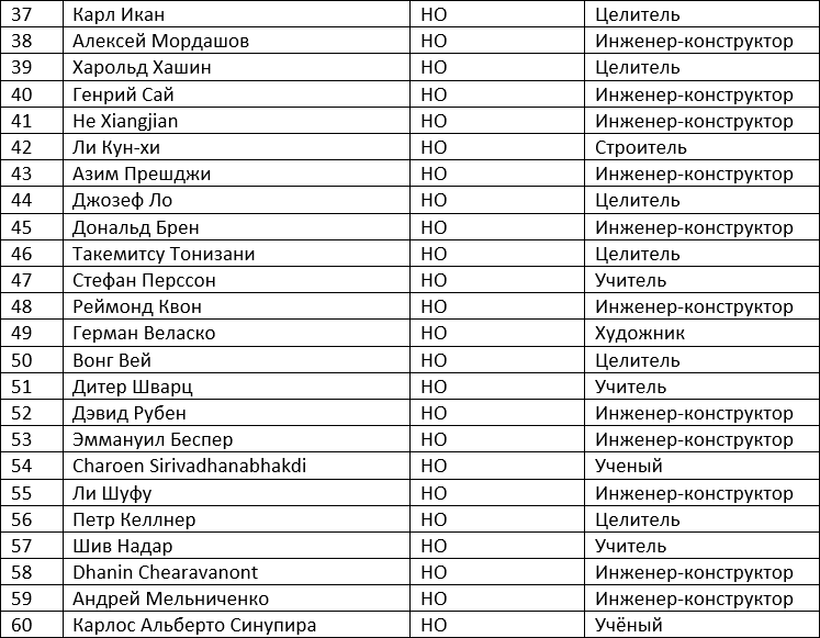 Что касается российского списка самых богатых людей, то там ожидаемо меньший процент ноосферных представителей, чем в глобальном. В России много возможностей подняться наверх, не представляя из себя особой ценности. Тем не менее, много достойных людей есть и в российском списке.