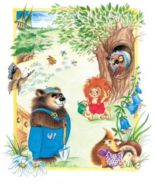 Мадам Белка примчалась с черничными пирогами. Прилетела мадам Сова и принесла книжку, разрисованную картинками. Но маленькая болотница упорно отказывалась и от пирогов, и от чая, а вот книжку взяла и принялась разглядывать.