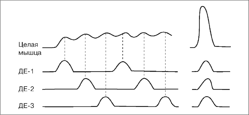Рис. 12. Различные режимы работы двигательных единиц (ДЕ)