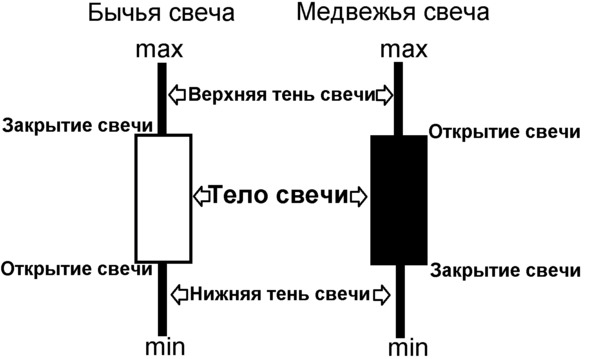 Свечи бывают бычьи (растущие) и медвежьи (падающие).