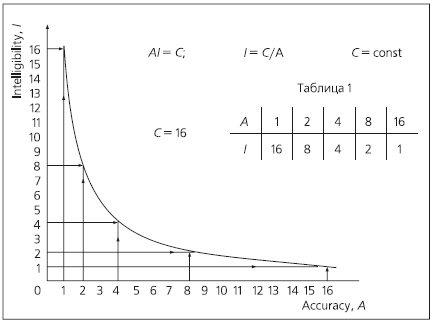 На графиках ясно видно, что с ростом величины постоянной С можно получить бо́льшую понятность при той же точности или же бо́льшую точность при той же понятности. Какой вывод следует отсюда? Следует стремиться к максимальному значению постоянной С в данных гиперболических зависимостях.