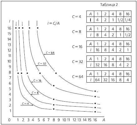 На рис. 2 величина C, которая, вообще говоря, может иметь самое произвольное значение от нуля до бесконечности, с целью упрощения вычислений и большей наглядности выбрана равной 16. Но это, повторю, верно для любых С (см. рис. 3, где C = 4, 8, …, 32, 64, …, m).