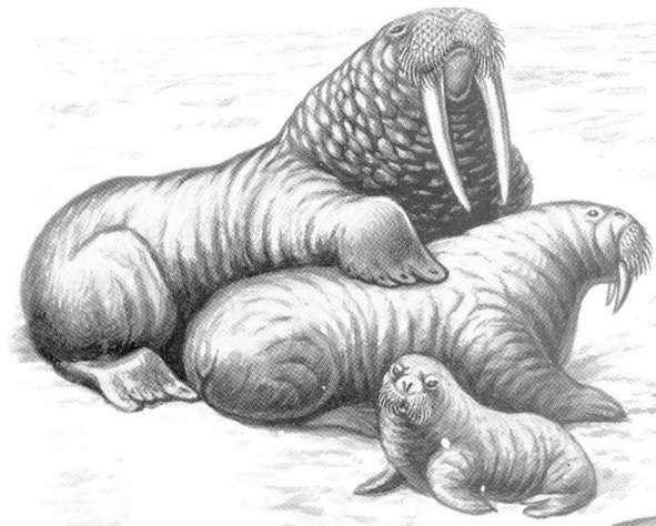 Рождение потомства с большой жировой массой тела очень наглядно демонстрируют все виды ластоногих (тюлени, моржи, морские котики). Примечательно и то, что кормление молоком у них весьма ограничено во времени. Самка хохлатого тюленя общается со своим детенышем всего один-два раза и покидает его навсегда, оставляет на произвол судьбы по собственному обеспечению пищей.