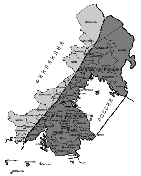 Рис. 1. Переданная Финляндией СССР в 1944 г. территория Карельского перешейка и Ладожской Карелии