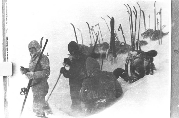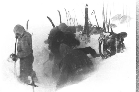 Последние снимки из фотопленок группы «Хибина»: туристы в снежной мгле заняты отнюдь не установкой палатки.