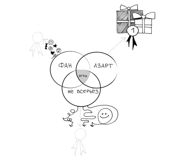 Но если это так сложно описать, то зачем нам вообще надо говорить про это состояние игры? Да хотя бы потому, что без этого неуловимого состояния не случится игры, а будет что-то другое – интерактивное упражнение, отработка навыка, соревнование или разработка стратегии. К этому важному вопросу – о состоянии «в игре» – мы ещё вернёмся чуть позже, а пока продолжим разговор о понятии игры.