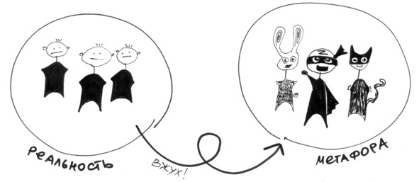 Наконец, важную роль в провокации необходимого состояния и атмосферы играет метафора игры. Удачный образ, аналогия позволяет как взглянуть на ситуацию с неожиданной стороны, так и улыбнуться узнаванию давно любимых сюжетов.
