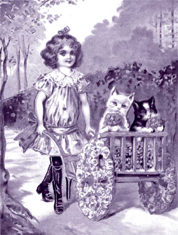 Винтажная открытка. Играя в саду, Агата придумывала разные истории про котят