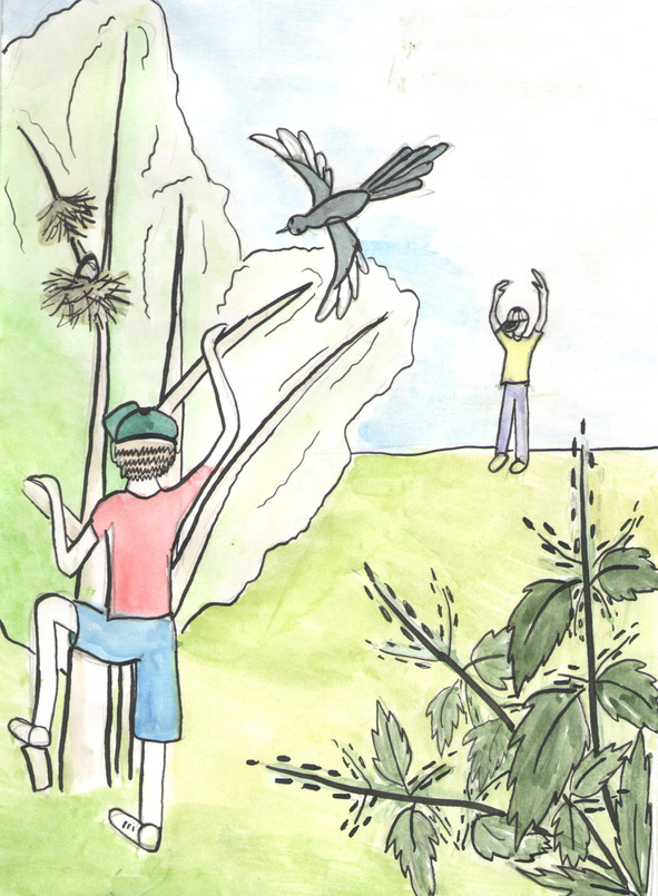 – Ладно, Мишка, ты постой тут и подожди меня. А я мигом к гнезду слётаю.