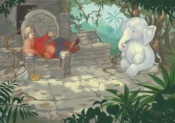 Owing to Lanchenmo, the Elephant Prince grew up bright and clever, fathoming things ordinary creatures couldn’t.