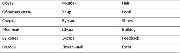 1. Выстройте слова в ряд «русское слово – англицизм – перевод»:
