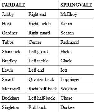 The signal was given for the center-back play. The Uniontown players were surprised to see little Smart take the place of the ponderous Tubbs, while Tubbs retired to full-back and Singleton became temporary quarter-back.