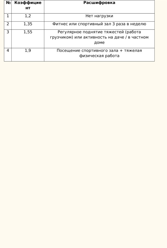 Теперь этот показатель умножают на коэффициент двигательной активности: