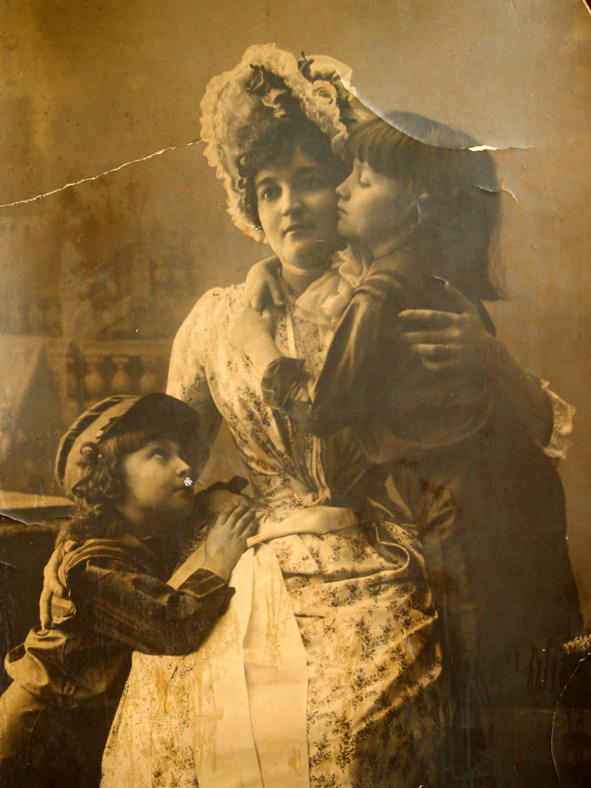 Мария Иосифовна с двумя сыновьями, старшим Иосифом (справа) и Леоном (слева), 1885г.