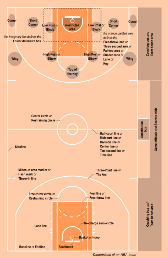 «Кортом» на официальном языке называется баскетбольная площадка. Обычно она покрыта деревянным паркетом, хотя в уличных версиях может использоваться резина или цемент.