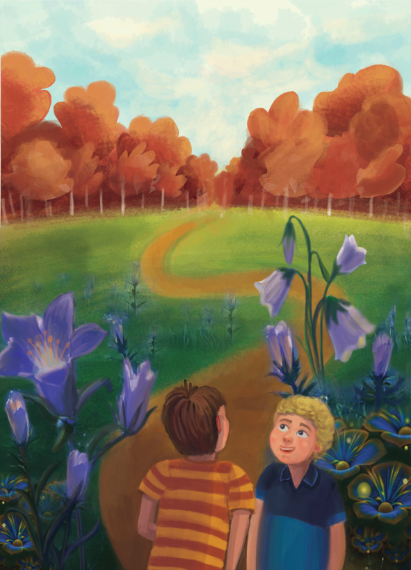 Трудно сказать, на что была похожа эта страна. Здесь перемешалось волшебство с реальным миром. Мы отряхнулись и покружились вокруг себя, оглядываясь вокруг. Наши грязные ботинки топтались по зелёной поляне, где красовались огромные нарисованные цветы. Все лепестки их были плоские, колыхающиеся в разные стороны от дуновения лёгкого ветерка. В воздухе стоял запах весенней капели, ласковых солнечных лучей и нежных весёлых ландышей. Мы услышали несколько нот звенящих колокольчиков, которые заигрывали с нами своей непревзойдённой леденящей красотой. На поляне не было зелёной травы, скорее это напоминало мягкий батут с ковровой дорожкой. Я сделал несколько шагов и отпружинил от колыхающейся поверхности. Необыкновенную поляну окружали плоские бумажные деревья, их ветви загибались под тяжестью воздуха, а листва походила на разноцветные картинки. К каждой ветке были прикреплены атласные ленты алого цвета. Этот мир был создан в ярких красках – зелёная земля, жёлто-сине-розовые цветы, красно-белые деревья, только небо было обычным, таким же голубым, как и на нашей планете Земля. Мы с Витькой засомневались, что находимся именно в книге. Возможно, это действительно была другая планета, например, Марс или Уран.
