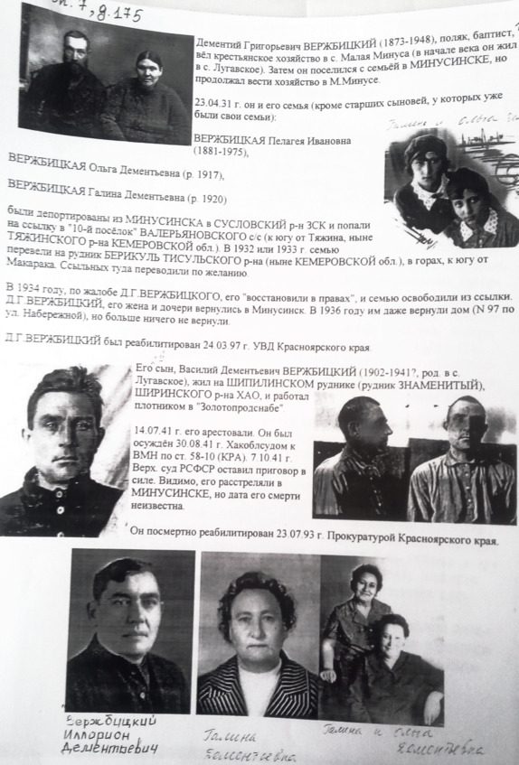Семья Вержбицких и репрессии. АМКМ. Оп. 7. Д. 175. Л. 1.