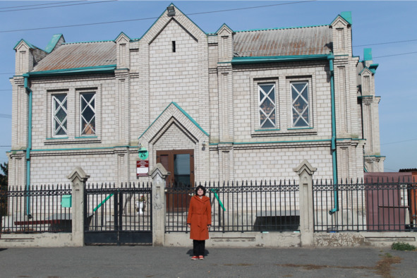 Молитвенный дом МРО ЦЕХБ «Луч Надежды» (г. Минусинск, ул. Крупской, д. 24). 08.10.2015 г. В центре – В. Е. Гиндер. Автор фото Е. А. Голиков. Из архива В. Е. Гиндер.