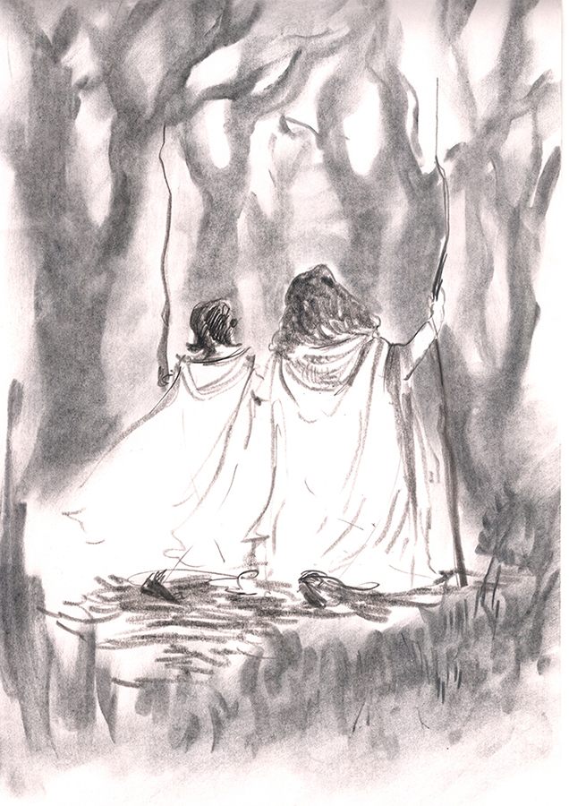 С ним что-то творилось, Мири ясно это видела. С каждым шагом карлик становился всё более грустным и задумчивым. Девочка не понимала, в чем дело: ведь они почти добрались до цели, а сейчас они шли по яркому светлому лесу, просто насквозь пропитанному радостью! Что же не так? Ей надоело гадать, пришло время всё выяснить. Поэтому Мири остановилась и спросила: