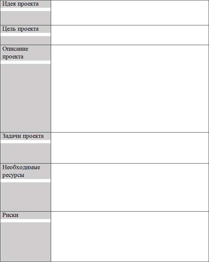 Еще раз заполните карту проекта с учетом проработанных вопросов экспертов.