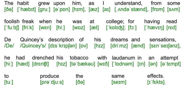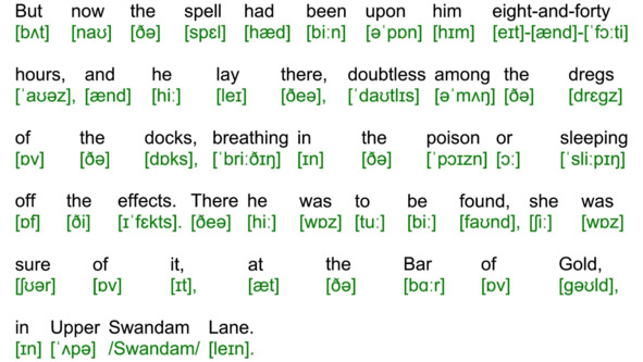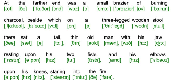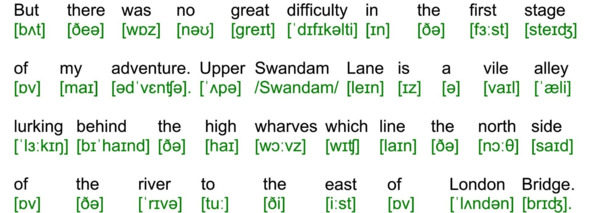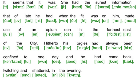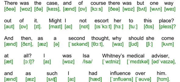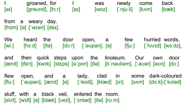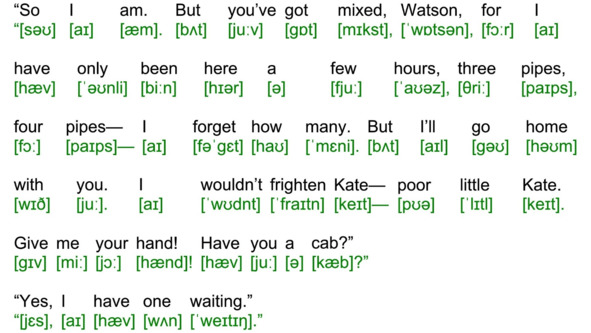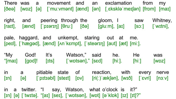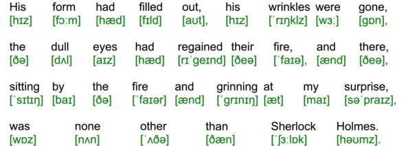 Для подготовки видеоролика использована бесплатная аудиокнига с публичного сайта Librivox (https://librivox.org/the-adventures-of-sherlock-holmes-version-4-by-sir-arthur-conan-doyle/), озвученная носителем языка (David Clarke), и бесплатная электронная книга с публичного сайта Project Gutenberg (http://www.gutenberg.org/ebooks/1661). Транскрипция, записанная символами международного фонетического алфавита, выполнена с помощью онлайн-переводчика английского текста в транскрипцию. Автор онлайн-переводчика – Дмитрий Янс (https://tophonetics.com/ru/).