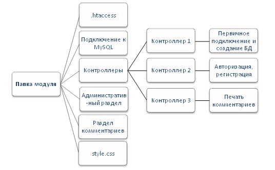 Учитывая вышеизложенное, изобразим полученные результаты графически. Результат представлен на рис.3. Модуль комментариев будет представлять из себя папку, содержащую блоки кода в виде файлов и вложенных папок, указанных на рисунке 3.