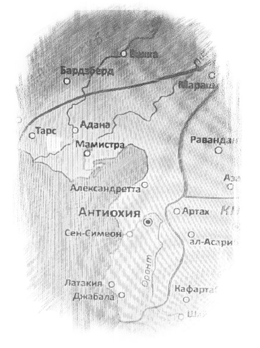 Осенью 1097 года в Сирии появились рыцари из Европы участники 1-го крестового похода, усиленные византийским отрядом под командованием протопроедр Татикия.