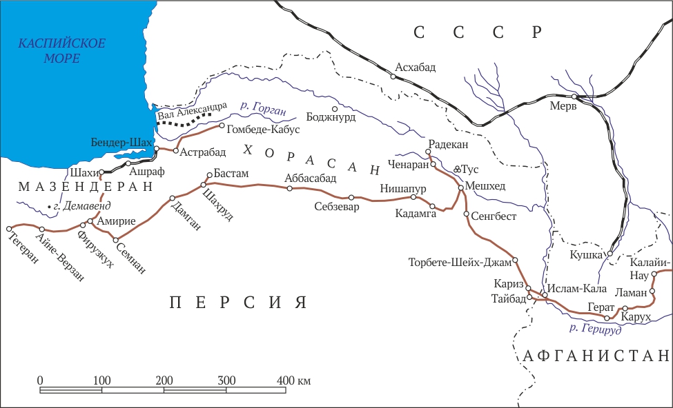 Через один фарсах мы приехали в маленький городок Сераскенд со старинной кирпичной чайханой. Купили немного винограда в магазине, где продавались баварские карандаши, стальные писчие перья и отрезы ситца. Во второй половине дня мы были в Даш-Булаге и там отдохнули у ручья с прекрасным видом на серое скопление глинобитных домов, конусы башен с накиданным на крыши навозом и высокие белые стволы золотисто-зелёных деревьев на фоне оголившихся розовых холмов.