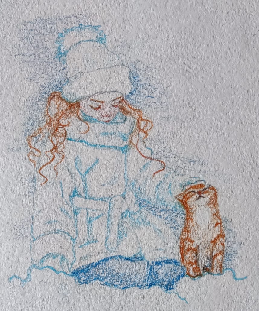 Я подошёл к горке и мяукнул, девочка, увидев меня, вскрикнула и подошла ко мне. Она отряхнулась, сняла перчатки и присела на корточки, протянула руку и погадила меня по голове. У неё была тёплая белая тонкая рука, с каждым прикосновением которой я чувствовал прилив сил, спустя две минуты она встала закричала что-то и побежала в дом, в окнах которого горел тёплый жёлтый свет. Я поднялся за ней по ступенькам на крыльцо и уселся рядом со стеклянной дверью. Вскоре девочка вышла с миской, она отошла немного от дома и поставила её на снег. Я почуял запах еды, подбежав к миске я в этом убедился – там были вперемешку мелко порезанные колбаса и сыр. Пока я уплетал салат моя спасительница подмела крыльцо от снега и вынесла стул. Когда я поел, она взяла и отнесла миску в дом, затем вернулась, села на стул и взяла меня себе на коленки, подсунула мне под живот что-то очень тёплое и начала меня гладить. Я быстро согрелся и уснул, когда я проснулся уже стемнело, а я лежал на стуле. Спустя двадцать минут мне принесли ещё очень тёплые сливки, пока я их пил девочка вынесла на крыльцо картонную коробку с высокими бортиками, в которую постелила что-то мягкое. Покончив со сливками, я запрыгнул в коробку, девочка ушла в дом, свет на крыльце погас, и я уснул, впервые за долгое время почувствовав, как во мне бьётся сердце.