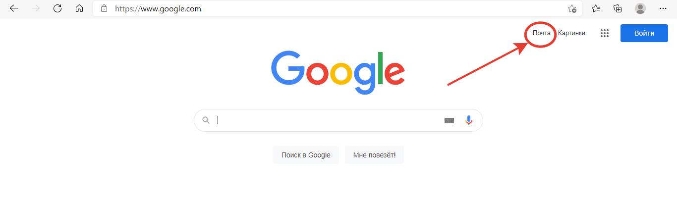 Набираем в адресной строке: google.com . В открывшемся окне выбираем «Почта».
